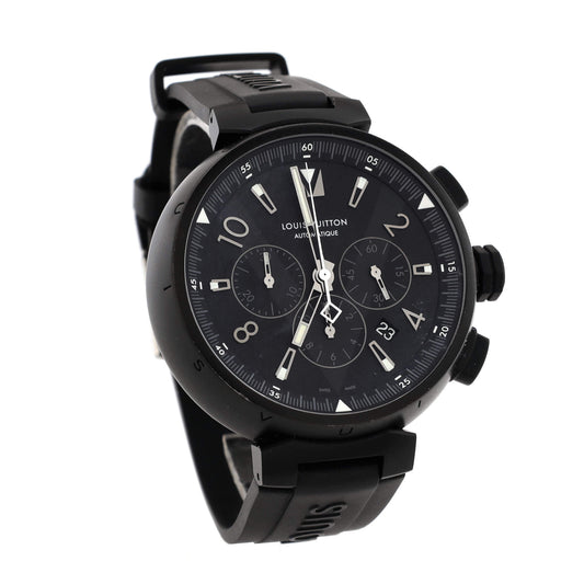 All Black Tambour Chronograph Automatic Watch PVD Stainless Steel and Rubber 46