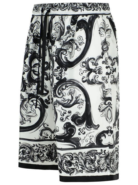 Dolce & Gabbana 'Maiolica' Black Silk Bermuda Shorts Men