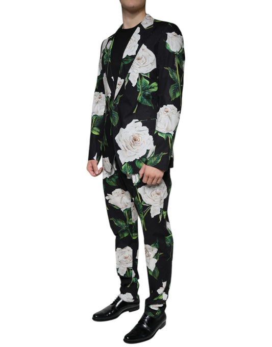 Dolce & Gabbana Black Rose Cotton Men Formal 2 Piece Men's Suit