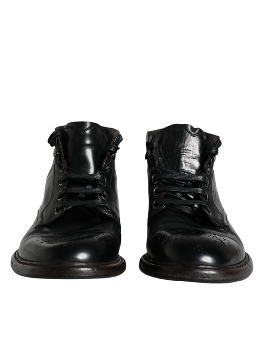 Dolce & Gabbana Black Leather Men Short Boots Lace Up Men's Shoes ()