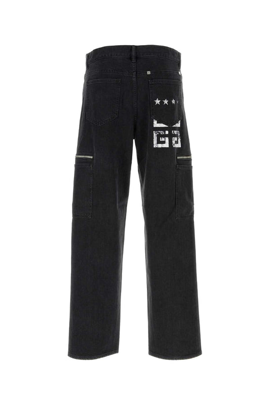 Givenchy Men Black Stretch Denim Cargo Jeans