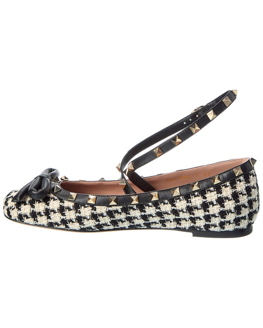 Valentino Rockstud Tweed & Leather Flat