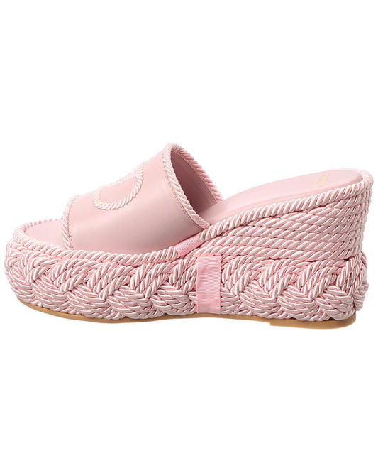 Valentino Vlogo Silk Torchon 100 Leather Wedge Sandal