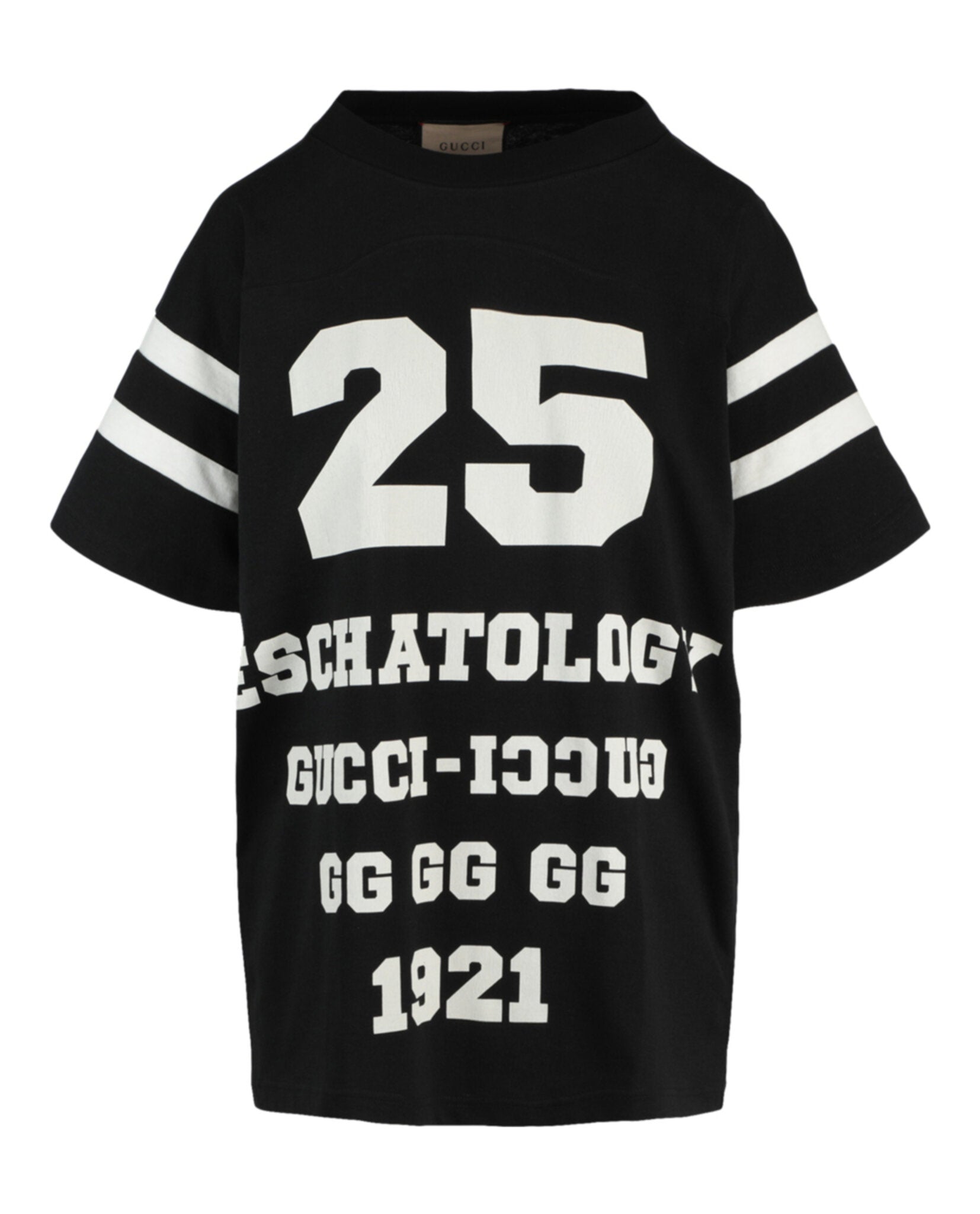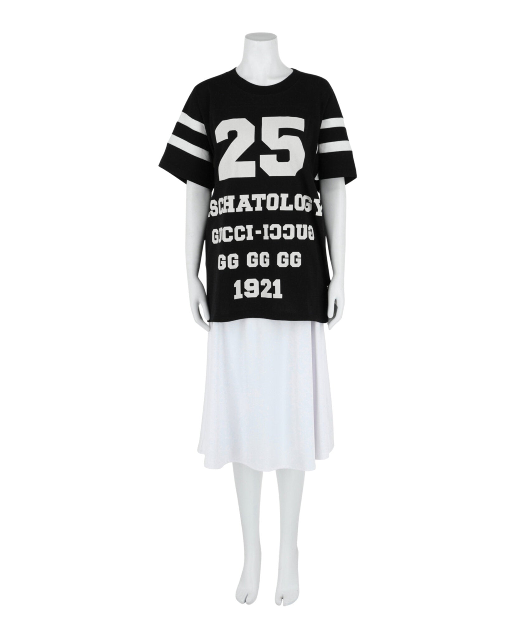 Slip on | Crewneck | Oversized fit | Eschatology print on the front and Loved print on the back; Drop shoulder; Side stripe detailing | Machine wash | 100% Cotton | Made in ItalyMeasurments - length - 741 mm