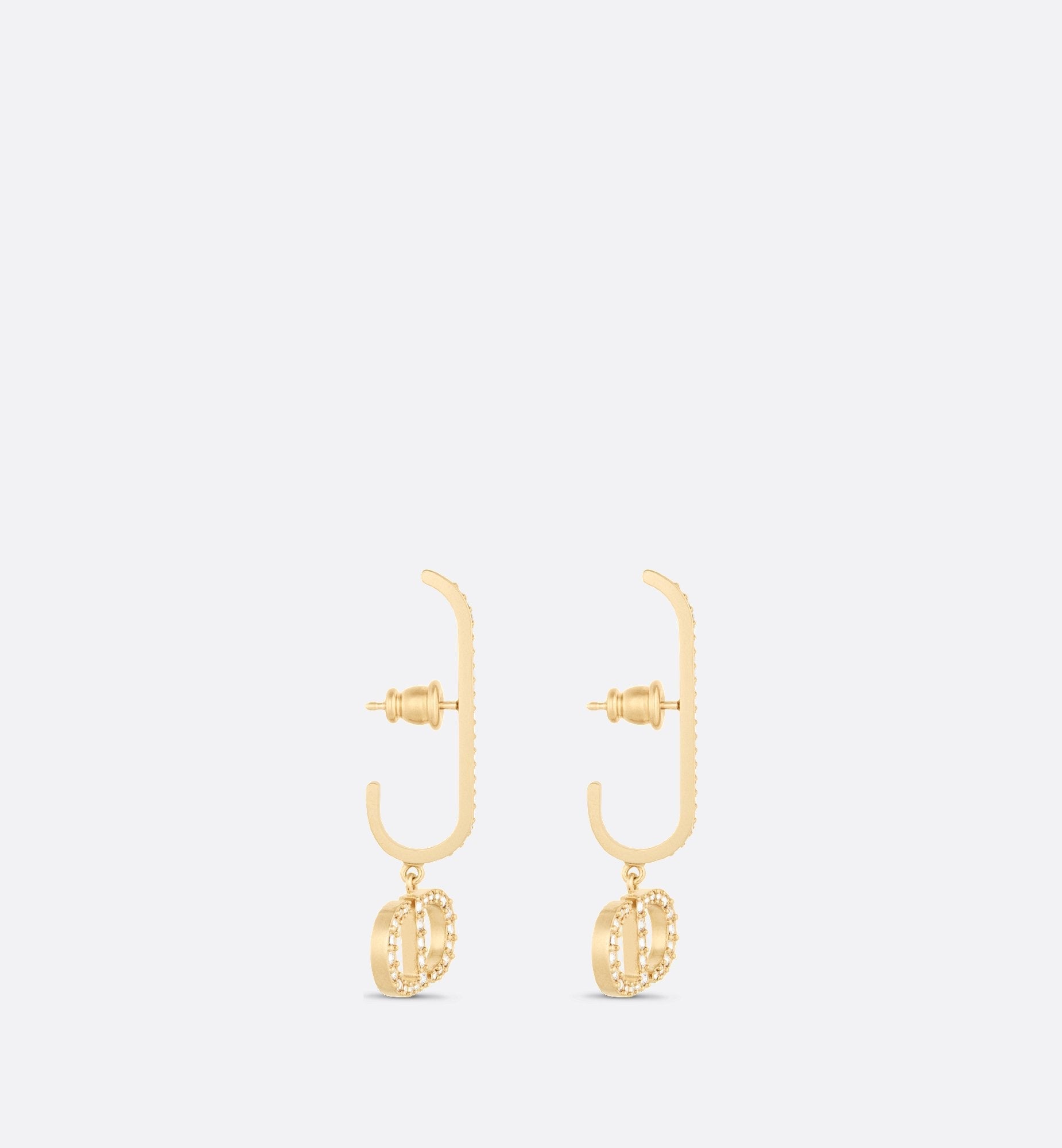 The 30 Montaigne earrings have a modern and elegant aesthetic. Finely crafted in gold-finish metal with a white crystal pavé, they showcase the 'CD' signature. Refined and bold, the earrings may be styled with other creations from the 30 Montaigne line.