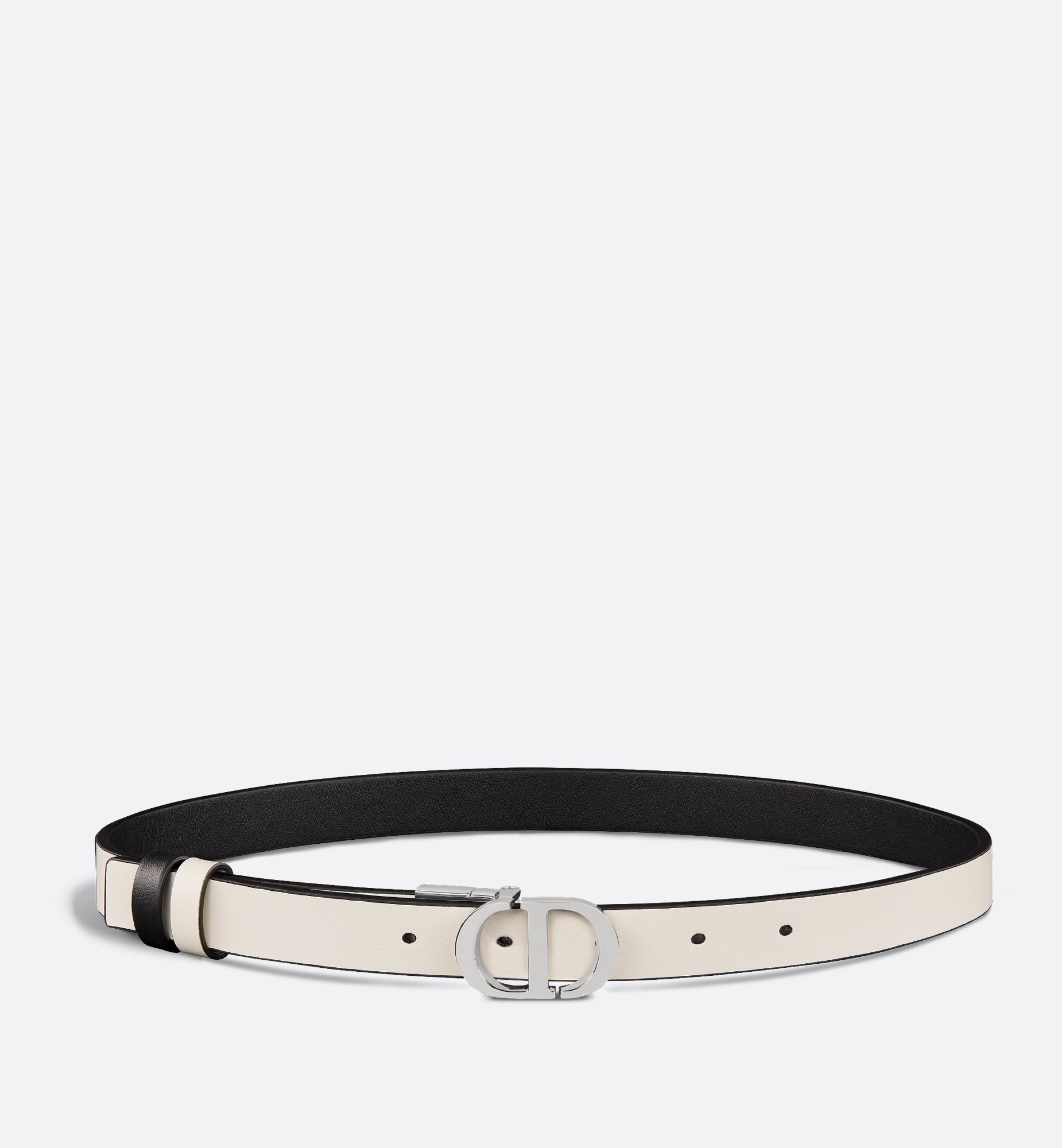 30 Montaigne CD buckle Palladium-finish metal detailing Two removable loops 95% calfskin, 5% brass Made in Italy