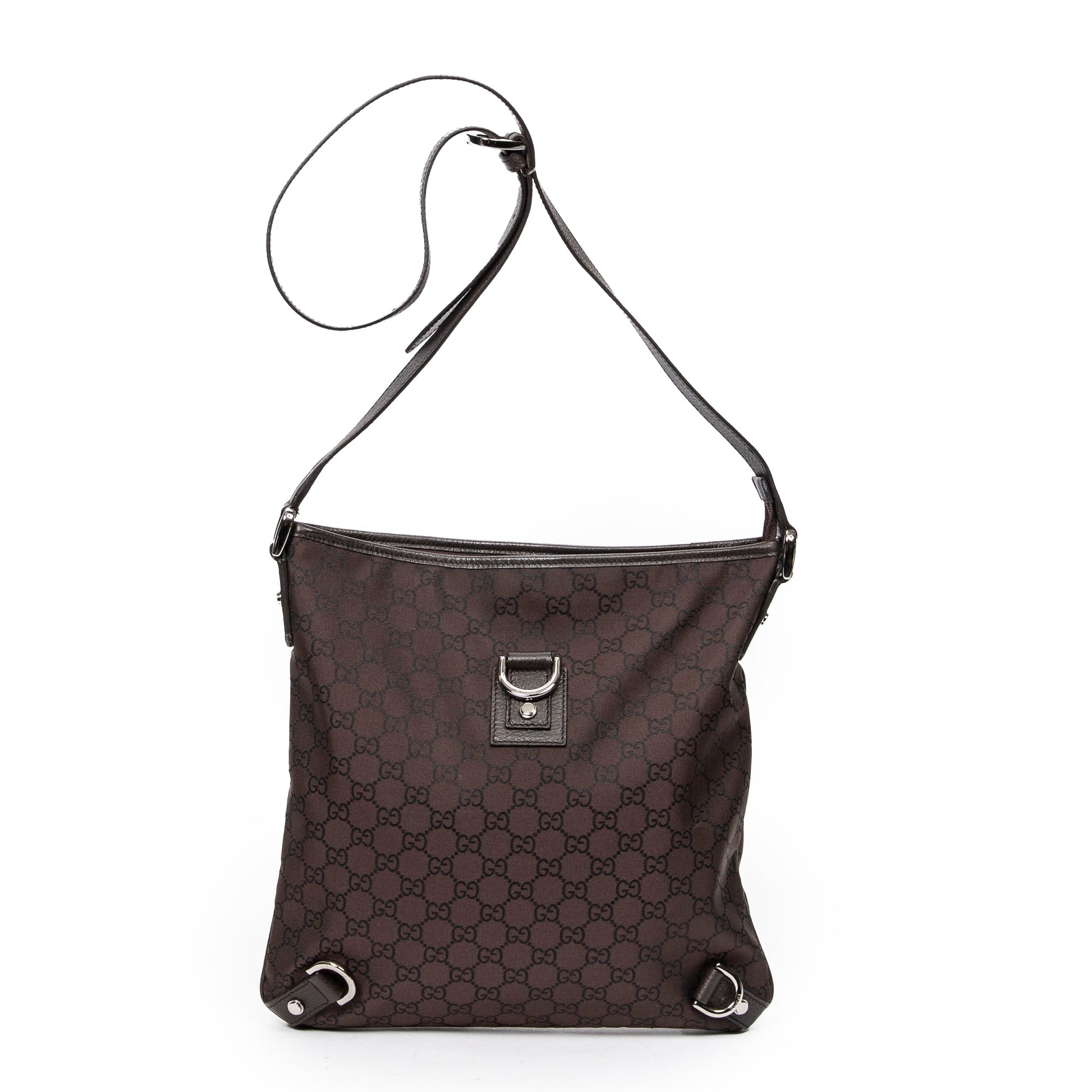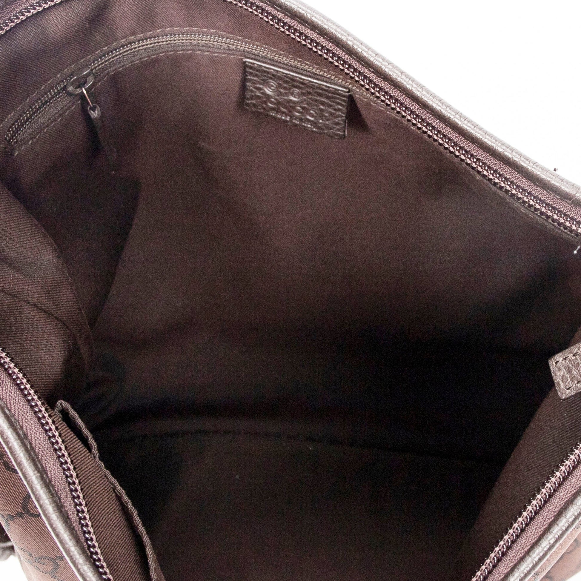 Gucci Shoulder Bag in Dark Brown Monogrammed Nylon Canvas and Silver hardware. Dimensions - 31*31*2cm. Serial number - 268642 467891. Inclusions - None.