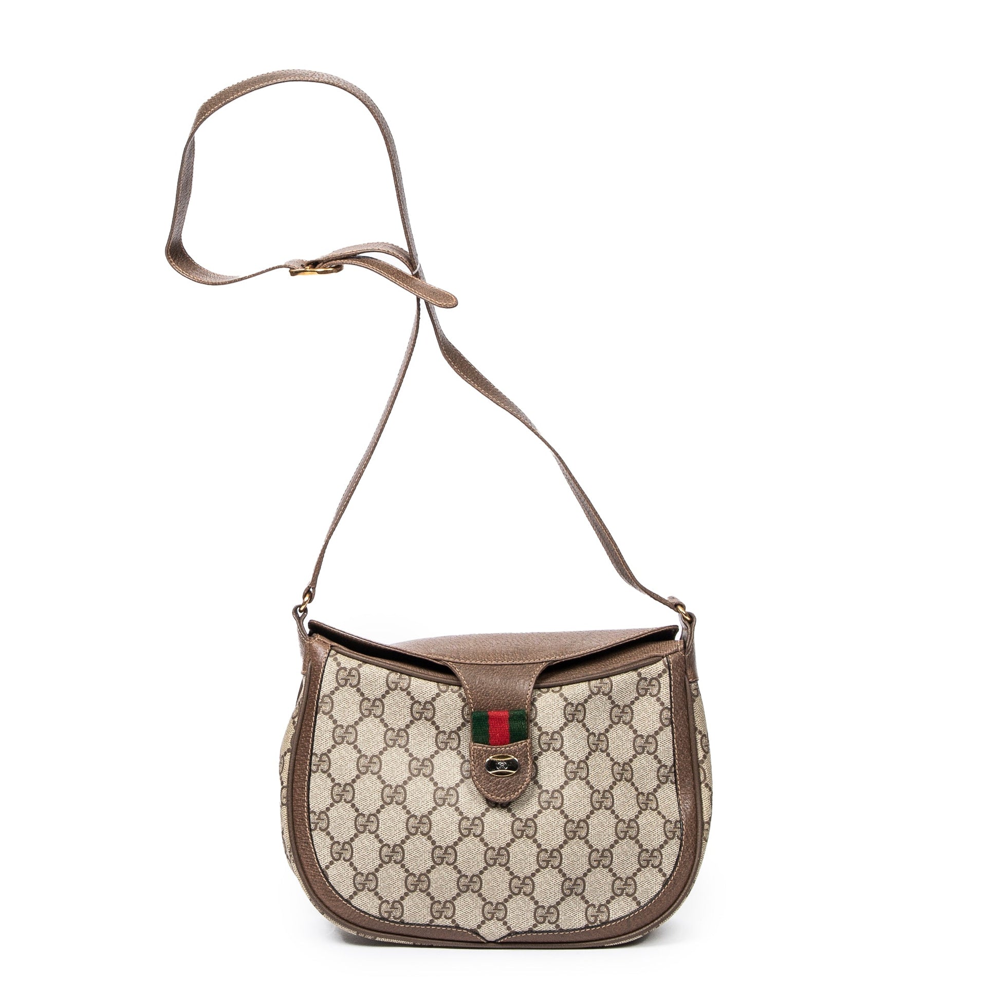 Gucci Shoulder Bag in Beige/Brown Supreme Coated Canvas and Gold hardware. Dimensions - 21*16*5cm. Serial number - 10.02.056. Inclusions - None.