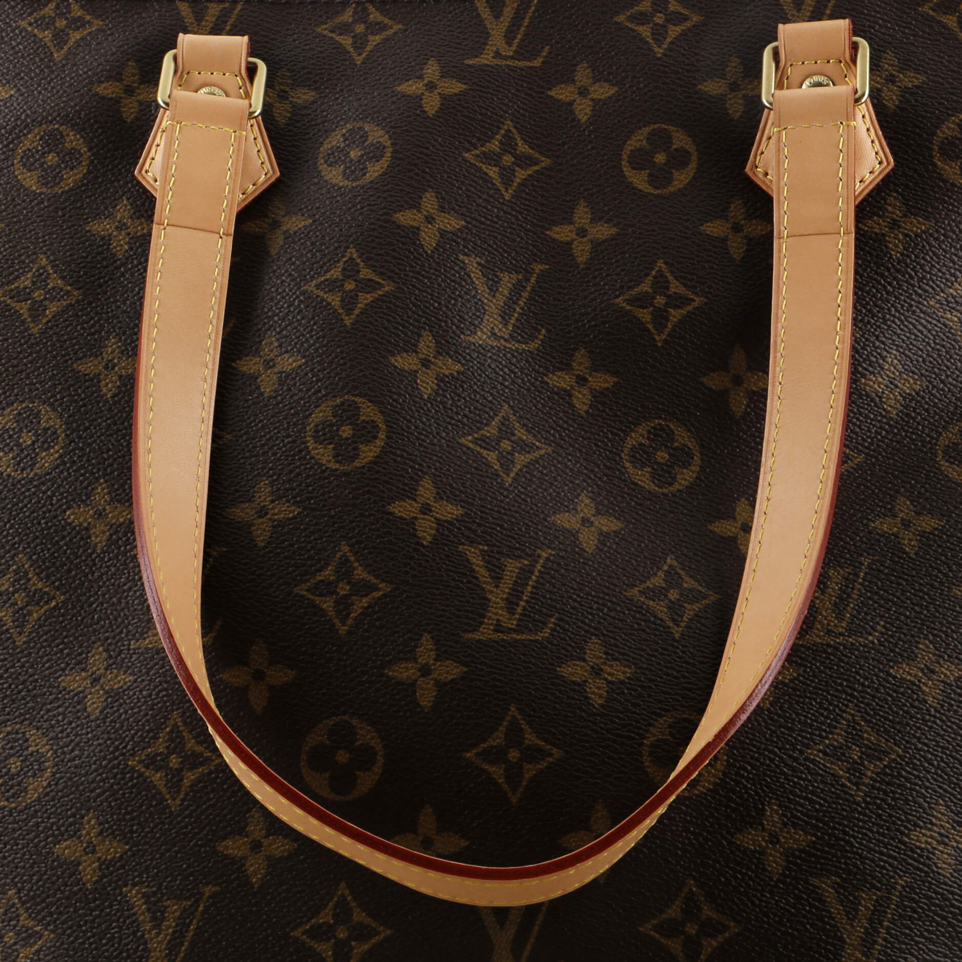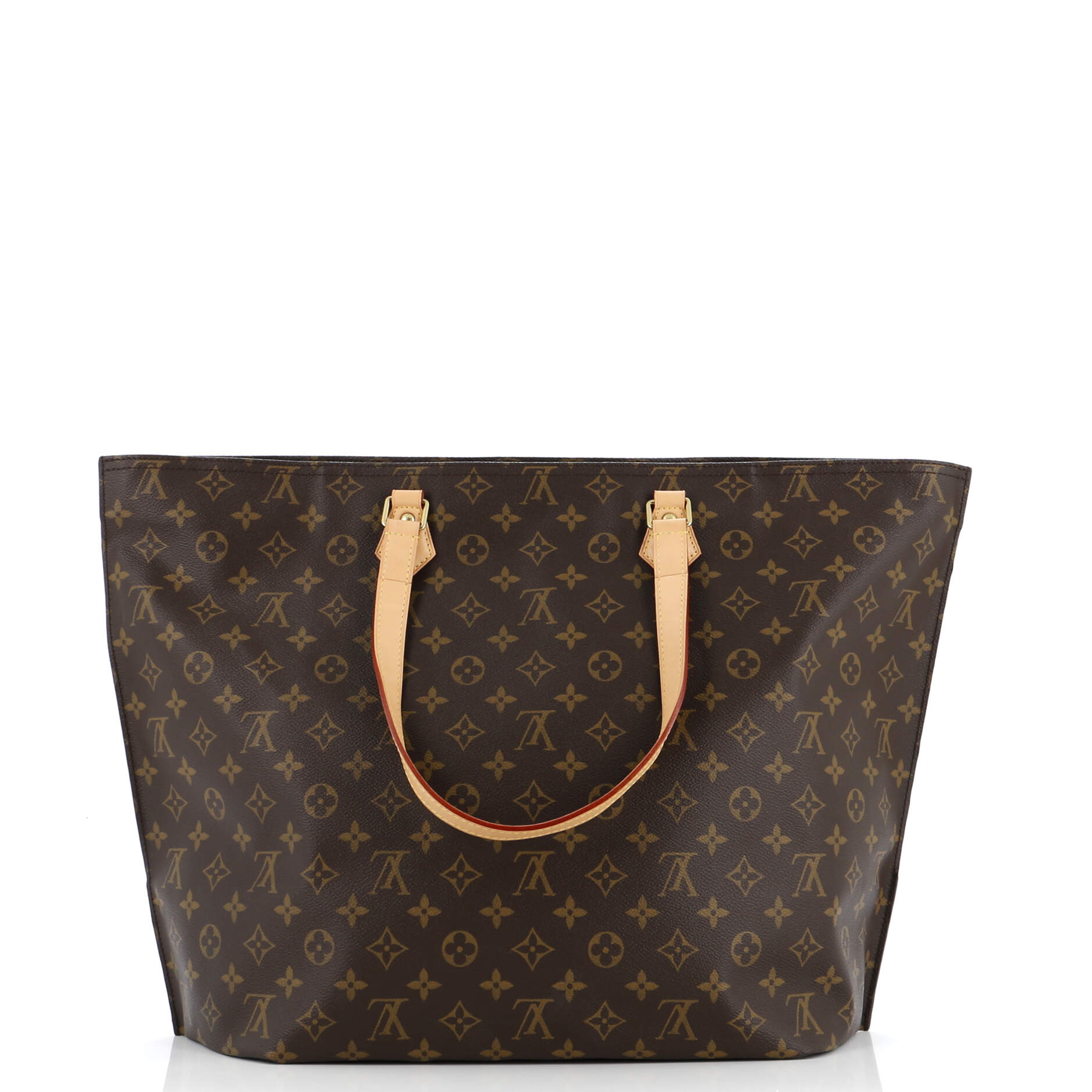 Condition - Great. Minor creasing, darkening, wear, scuffs and watermarks on handles, light wear and marks in interior, scratches and tarnish on hardware.
