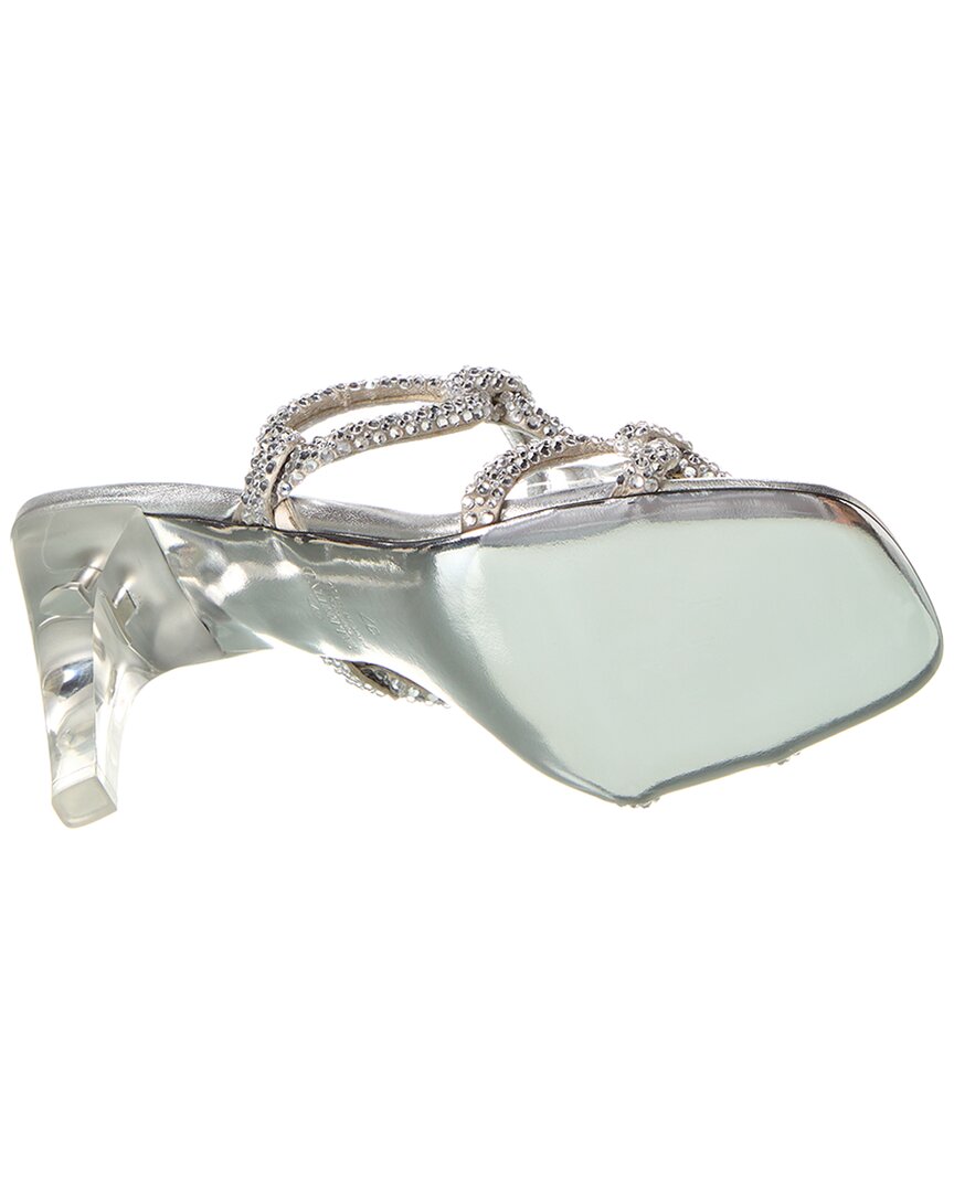 - 100 Leather & Vinyl Sandal In Silver Leather And Transparent Vinyl With Crystal Embellishments And Clear Heel