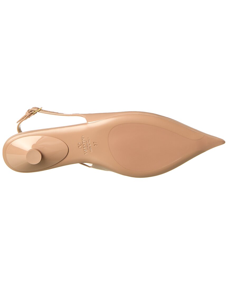 - Vlogo Patent Slingback Pump In Beige Patent Leather And Gold-Tone Hardware With Vlogo Accent