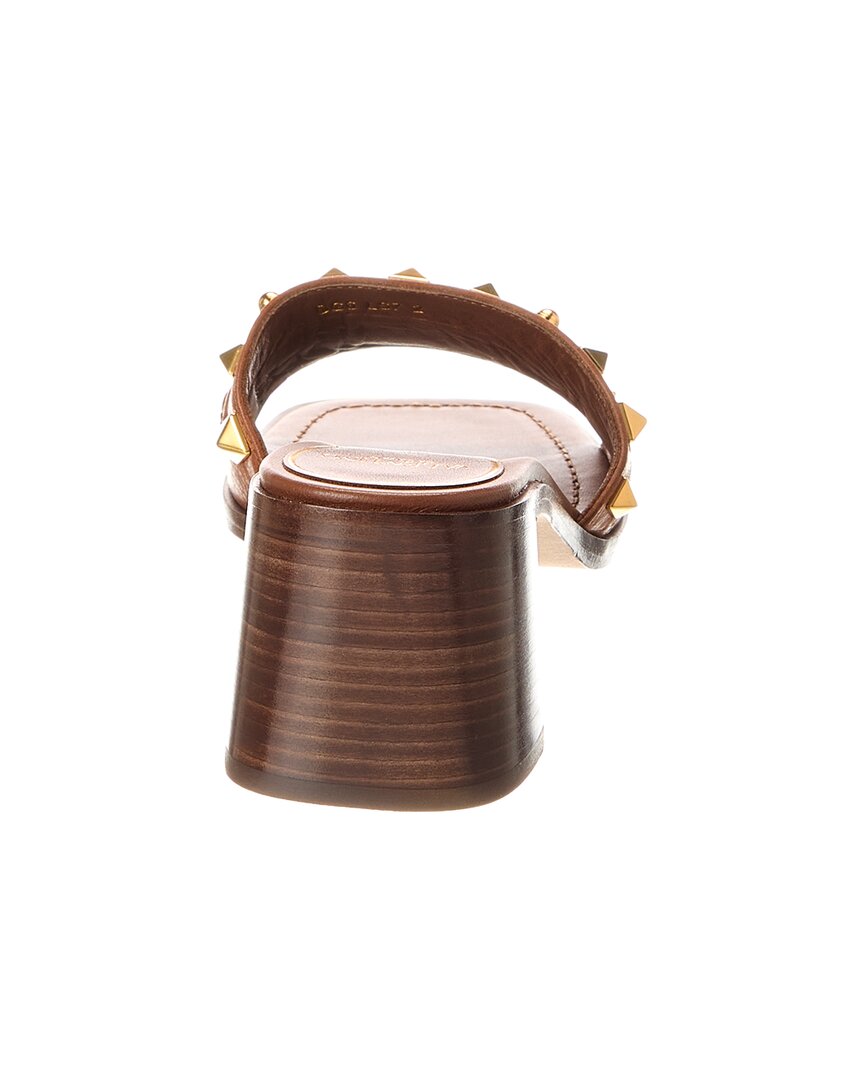 - Vlogo Rockstud 60 Leather Sandal In Brown Leather And Gold-Tone Hardware With Vlogo Accent And Rockstuds