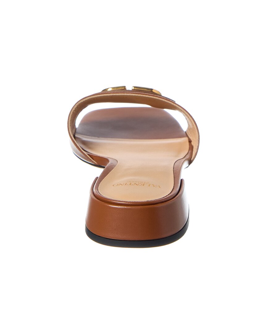 - Vlogo Signature Leather Sandal In Brown Leather And Gold-Tone Hardware With Vlogo Accent