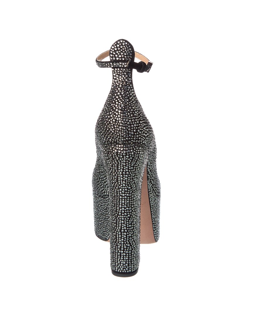 - Tan-Go 155 Suede Platform Pump In Black Suede And Gunmetal-Tone Hardware With Allover Crystals And Vlogo Buckle