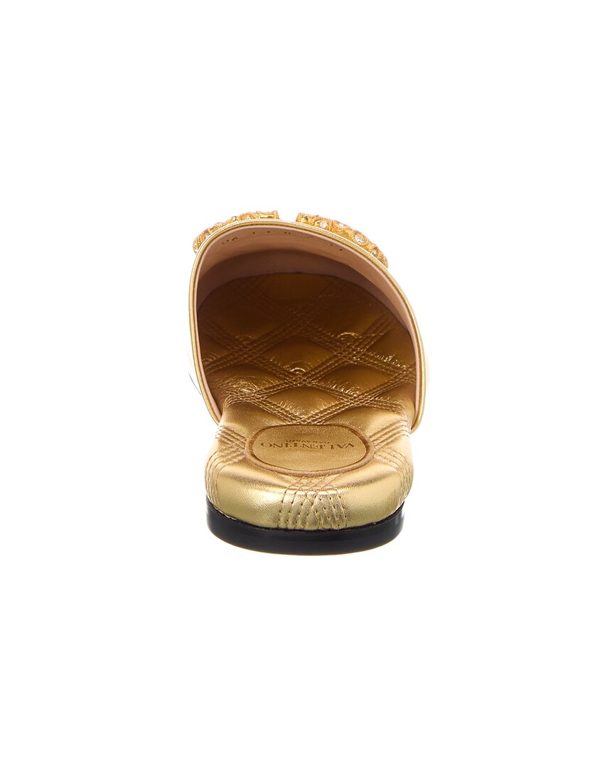 - Vlogo Signature Leather Mule In Gold Leather And Gold-Tone Hardware With Embellished Vlogo Accent