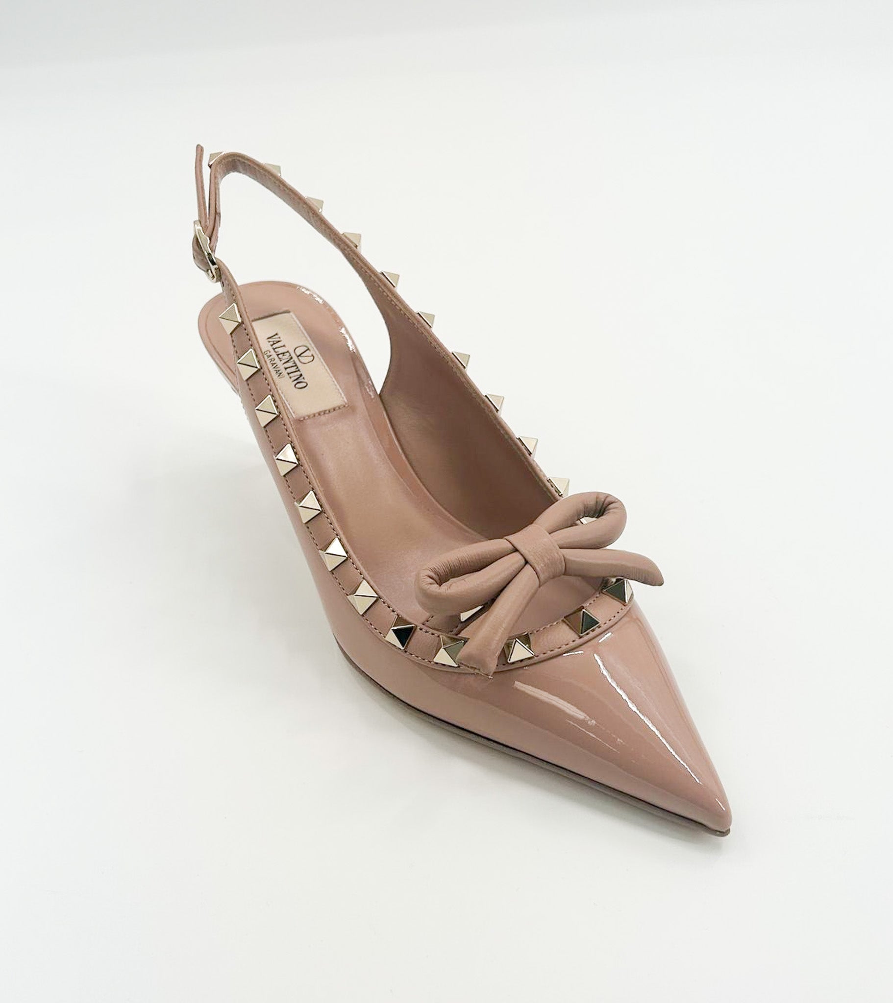 Manufacturer SKU: [ZW2S0HB6EQL 0NO] Â Indulge in the luxurious elegance of these Valentino Rockstud Bow 60mm Patent Leather Slingback Pumps. With a sleek patent leather finish and iconic palladium-finish studs, these pumps exude sophistication and edge. The charming nappa leather bow adds a touch of charm, while the comfortable leather footbed and durable leather sole ensure lasting comfort. Perfect for any occasion, these pumps will make you feel like a fashion expert. Â