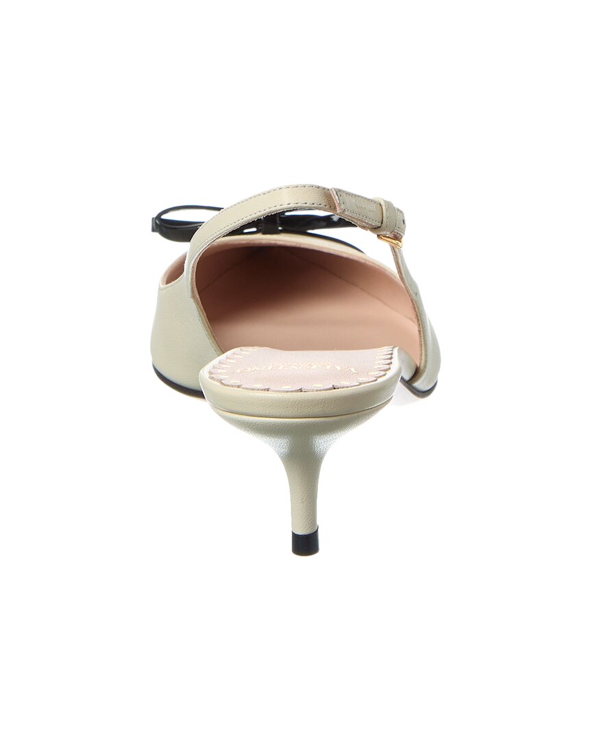 - Bepointy Leather Slingback Pump In White And Brown Leather With Contrasting Elongated Toe With Contrasting Applied Vlogo Detail, Applied Bow On The Front, Adjustable Slingback With Buckle On The Ankle