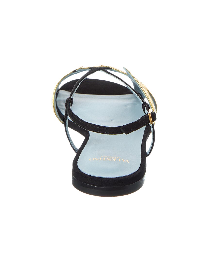 - Foliefoliage Suede & Leather Sandal In Black Suede And Gold Leather And Gold-Tone Hardware