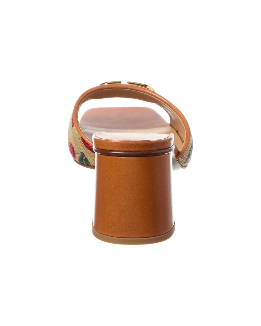 - Vlogo Signature 60 Cherryfic Leather-Trim Sandal In Cherryfic Printed Raffia Jacquard And Brown Leather And Gold-Tone Hardware With Vlogo Accent
