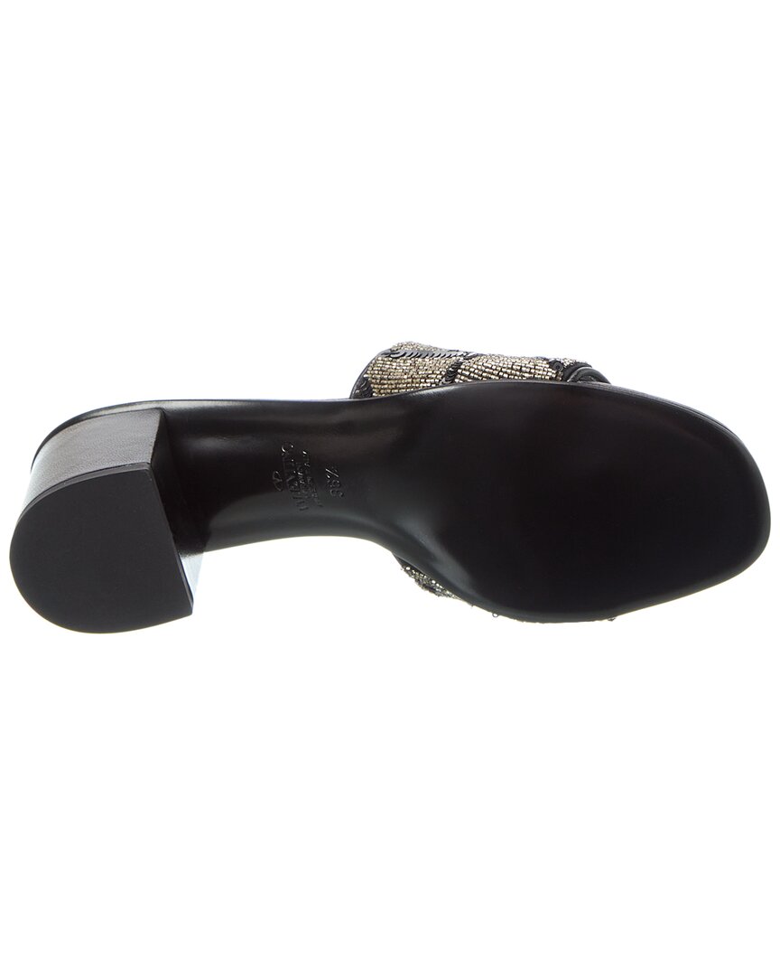 - Vlogo 50 Toile Iconographe Leather Sandal In Black Leather With Sequin And Bead Embellishments