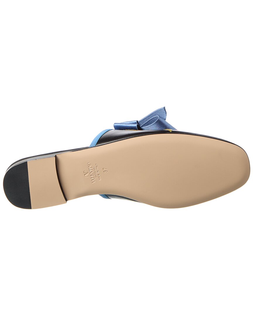 - Floral Embroidered Leather Mule In Black Leather And Gold-Tone Hardware With Vlogo Accent, Embroidered Design And Ribbon Bow Accent