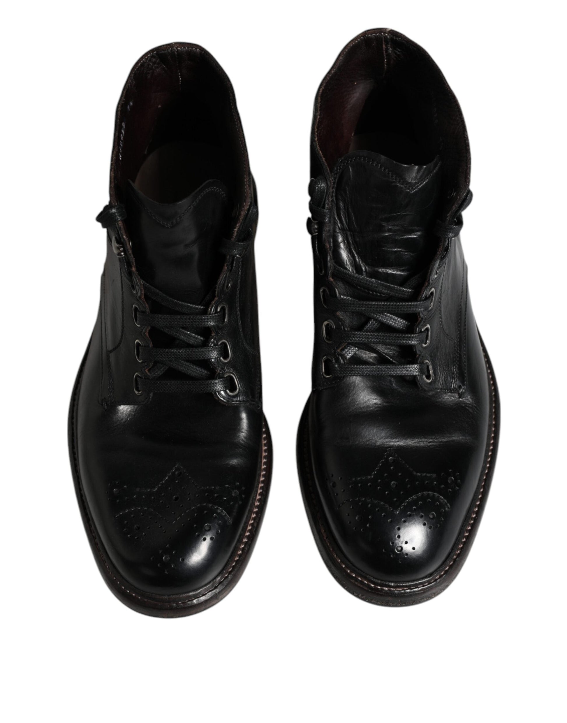 Dolce & Gabbana Black Leather Men Short Boots Lace Up Men's Shoes ()