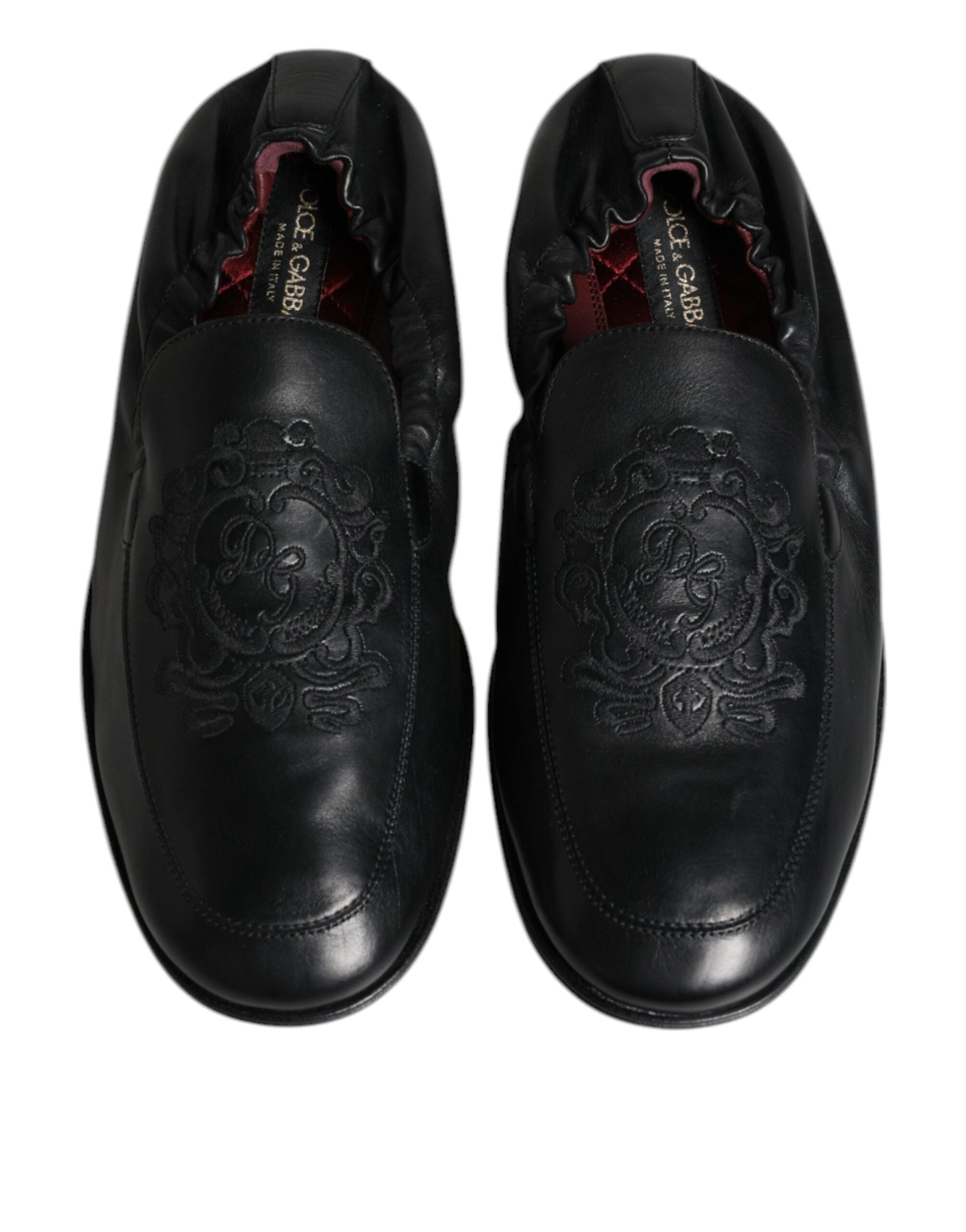 Dolce & Gabbana Black Logo Embroidered Leather Loafer Men Dress Men's Shoes