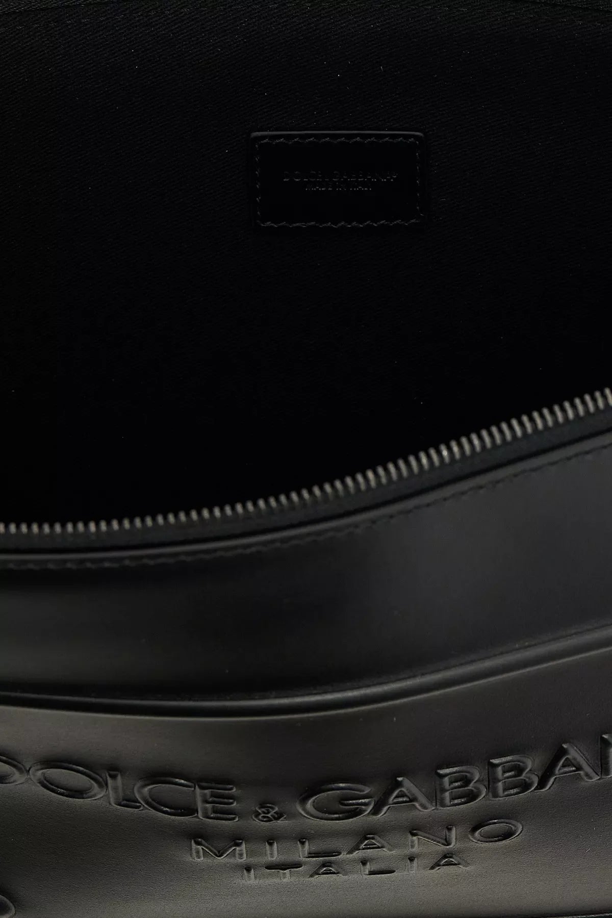 Large calf leather pouch with Dolce&Gabbana Milano logo plate with a three-dimensional effect, zip closure, removable handle.
