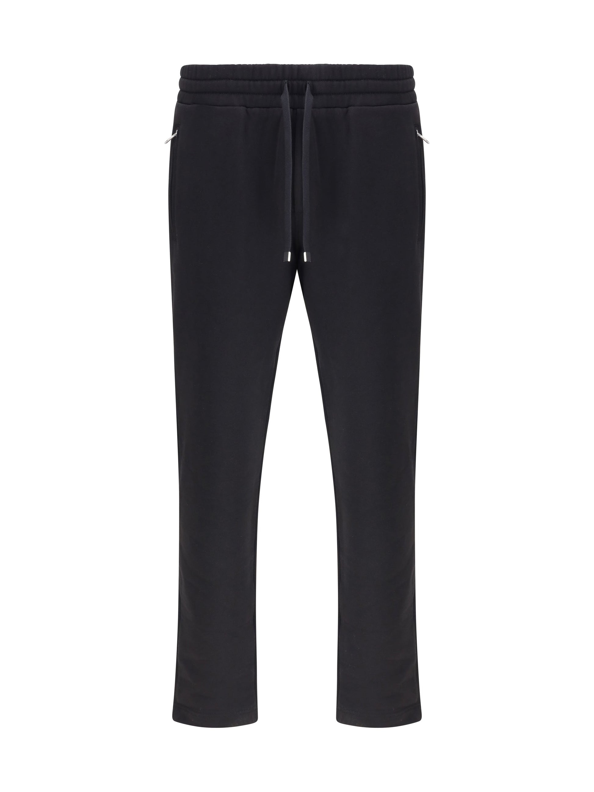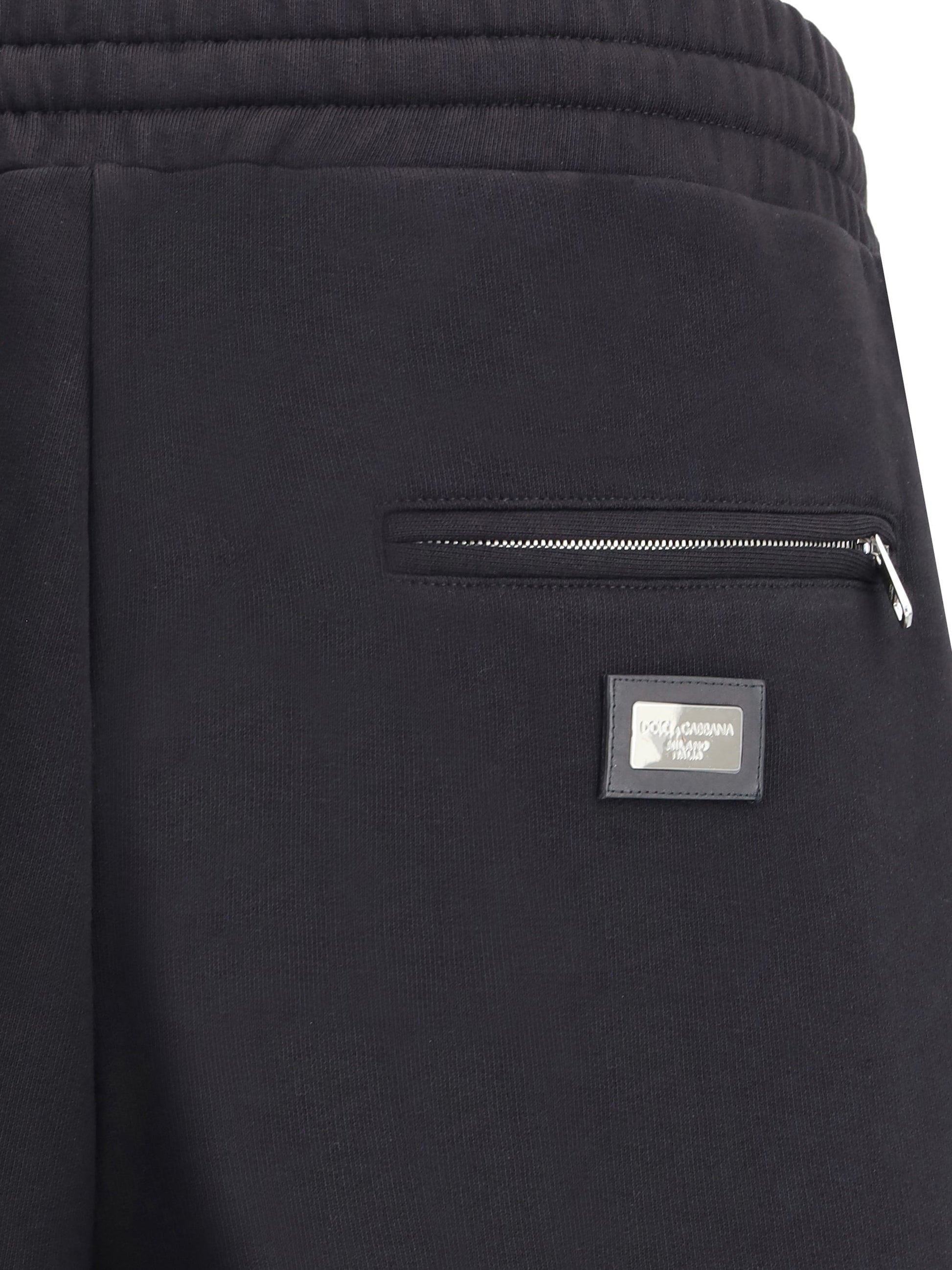 Dolce&Gabbana's cotton sweatpants feature an elastic, adjustable drawstring waistband and offer a comfortable, customizable fit. Sharp side zippered pockets and a back slit pocket with applied logo hardware add distinctive and functional details. Perfect for a relaxed yet stylish outfit, these pants combine style and comfort, becoming an essential piece in the wardrobe of those seeking quality and sophistication.