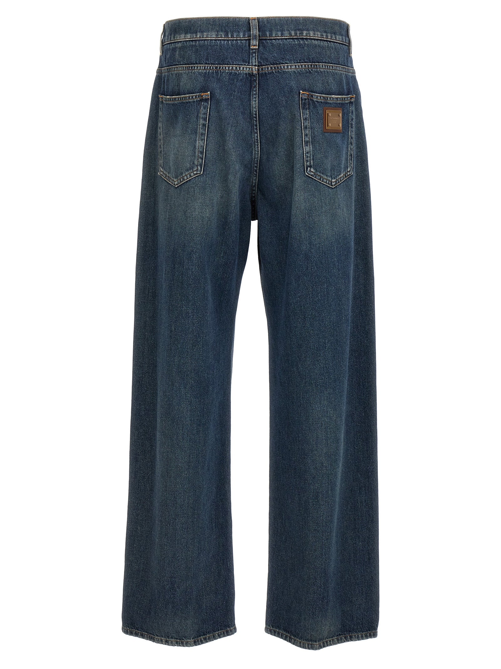 Regular' cotton denim jeans with zip and button closure, five pockets, back logo plaque, contrast stitching.