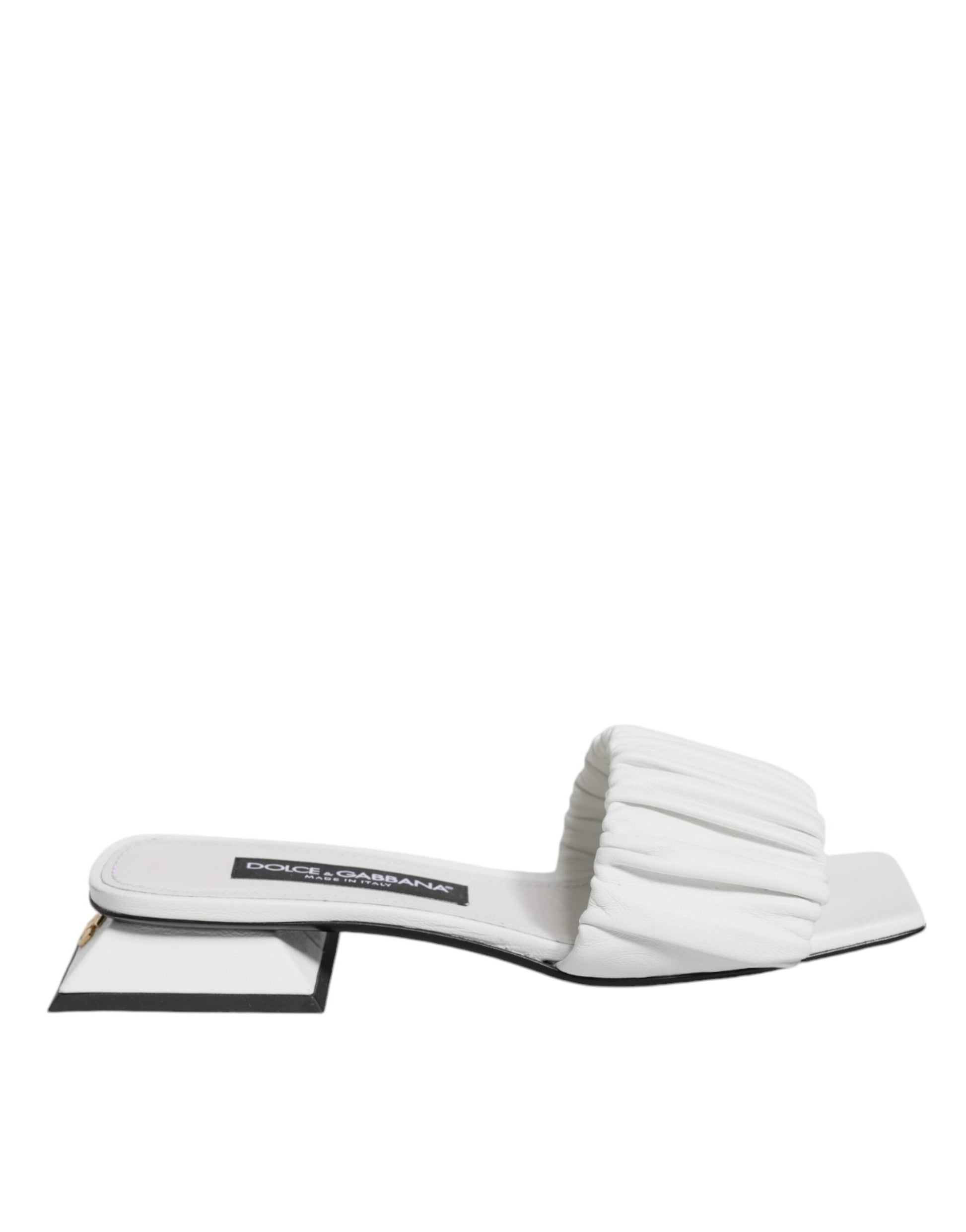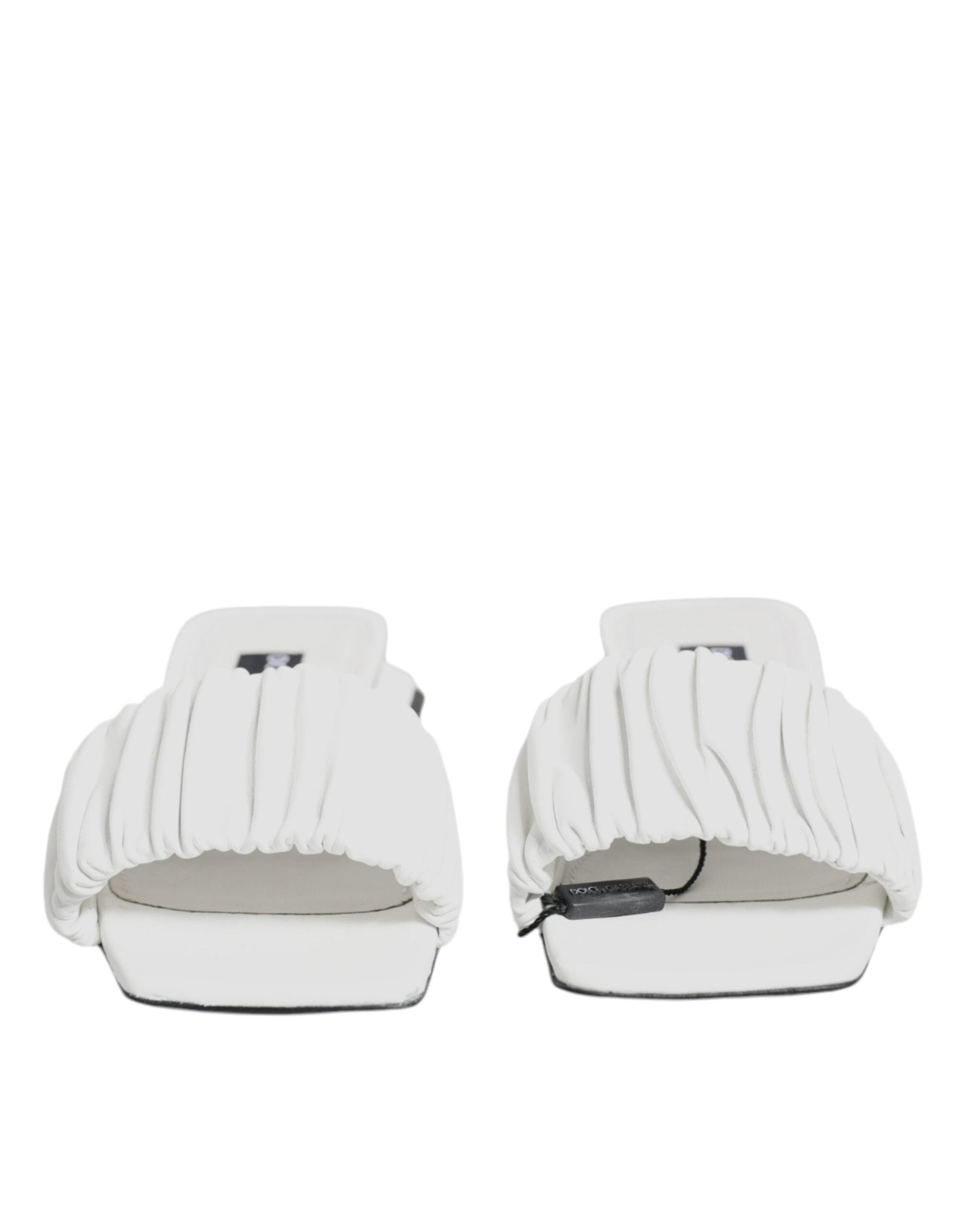 Dolce & Gabbana White Leather Slides Flats Sandals Women's Shoes ()
