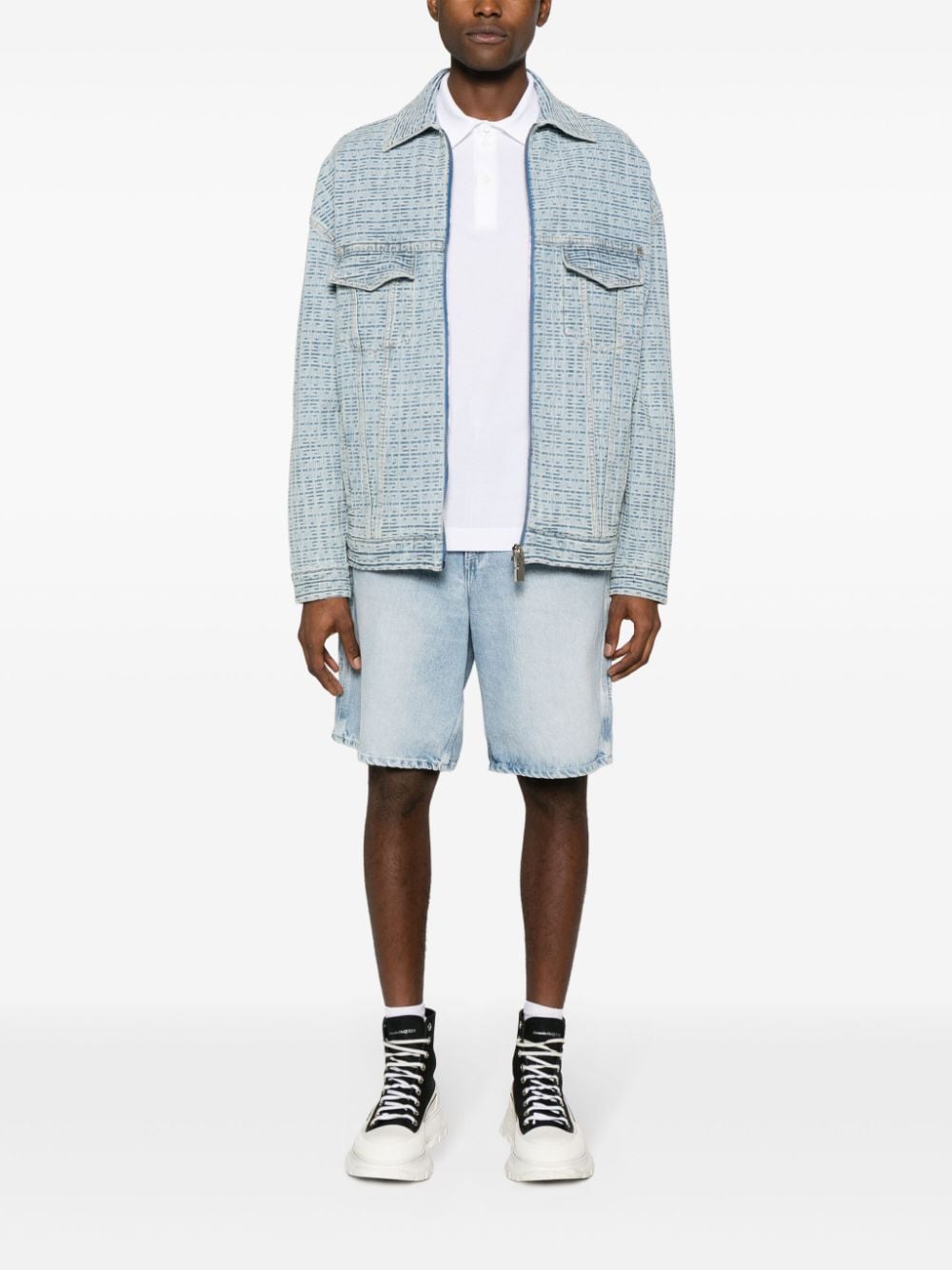 white cotton piqué weave signature 4G embroidery to the front polo collar short front button fastening short sleeves high-low hem short side slits
