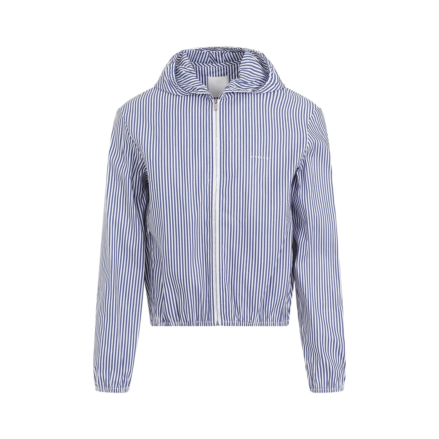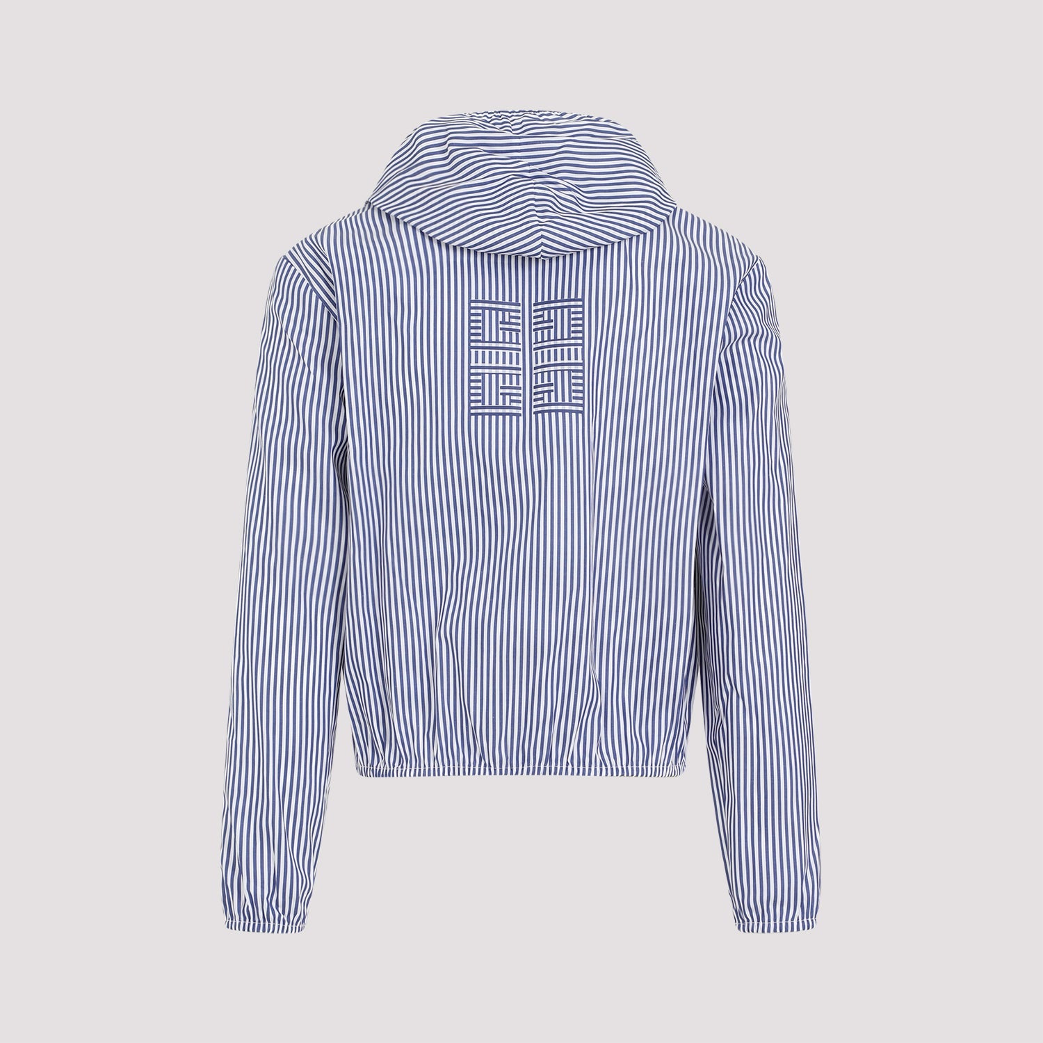 Givenchy Blue Cotton Shrunken Windbreaker Jacket. Pure cotton jacket, tonal hood, front zipped fastening, white embroidered logo on the chest, side zipped pockets, back 4G logo, long sleeves, straight hem. Blue and white stripes pattern all-over. Cotton | 100% COTTON