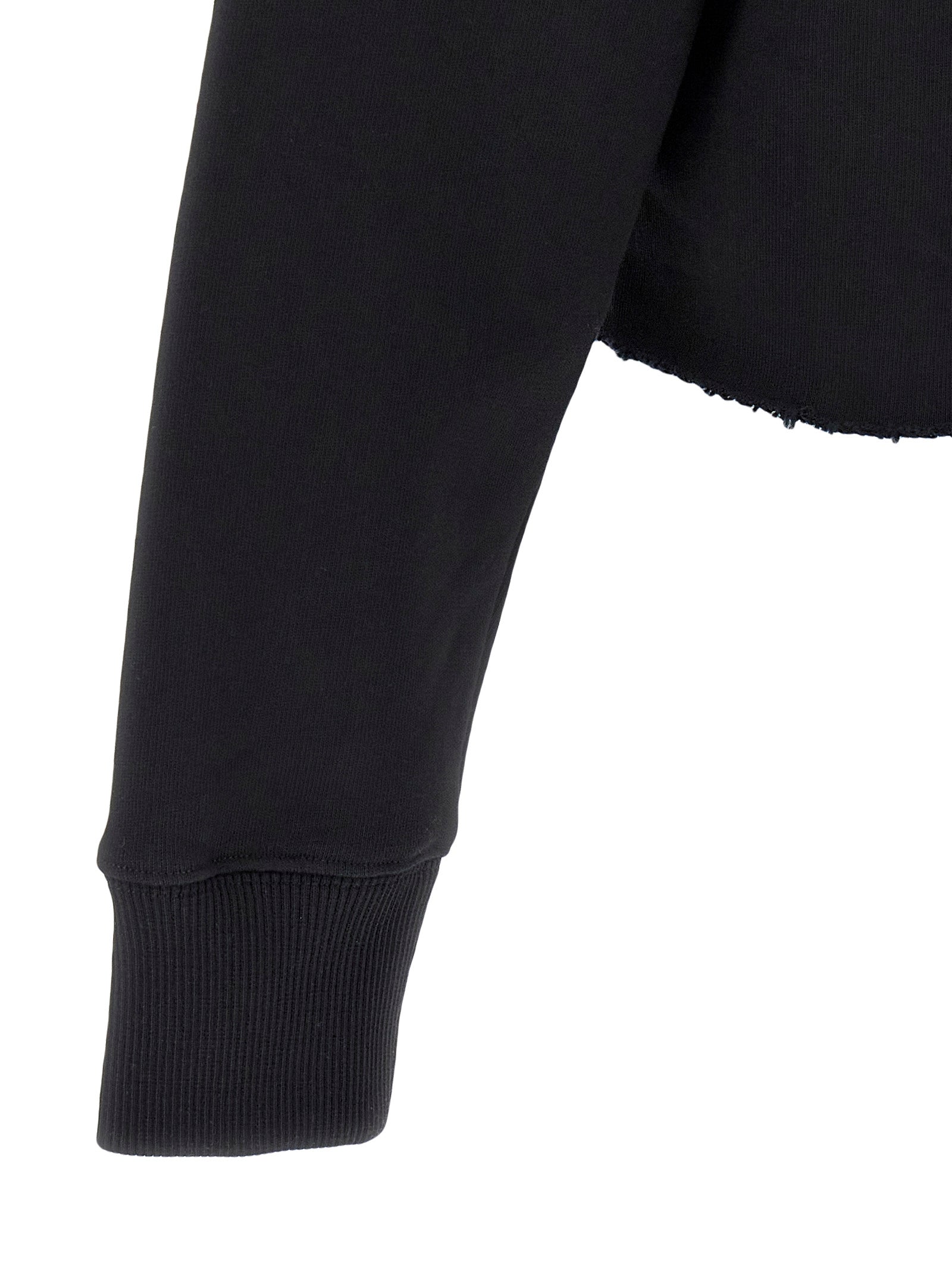 Brushed cotton hoodie, crop style with logo print and raw cut hem.