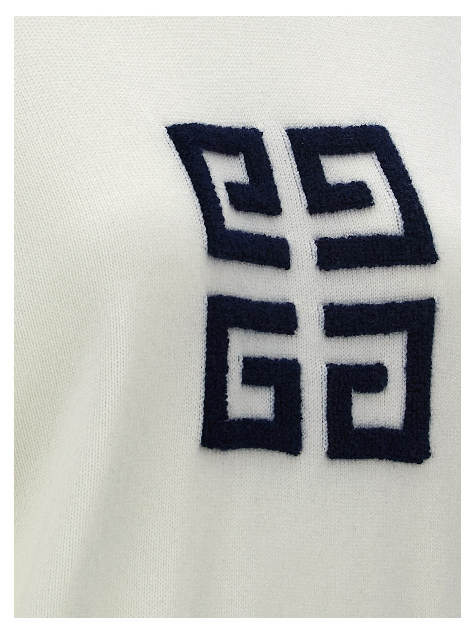 Cashmere sweater with embossed front flocked logo, crew neck, long cuffed sleeves.