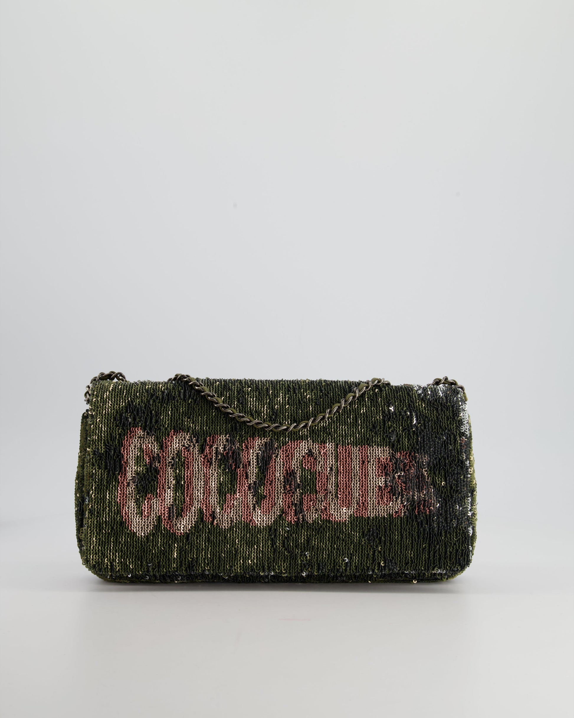 for more information on this item Hardware - Ruthenium Model -Limited Edition Coco Club Bag Material - Sequin Embellishment Colour - Khaki Green