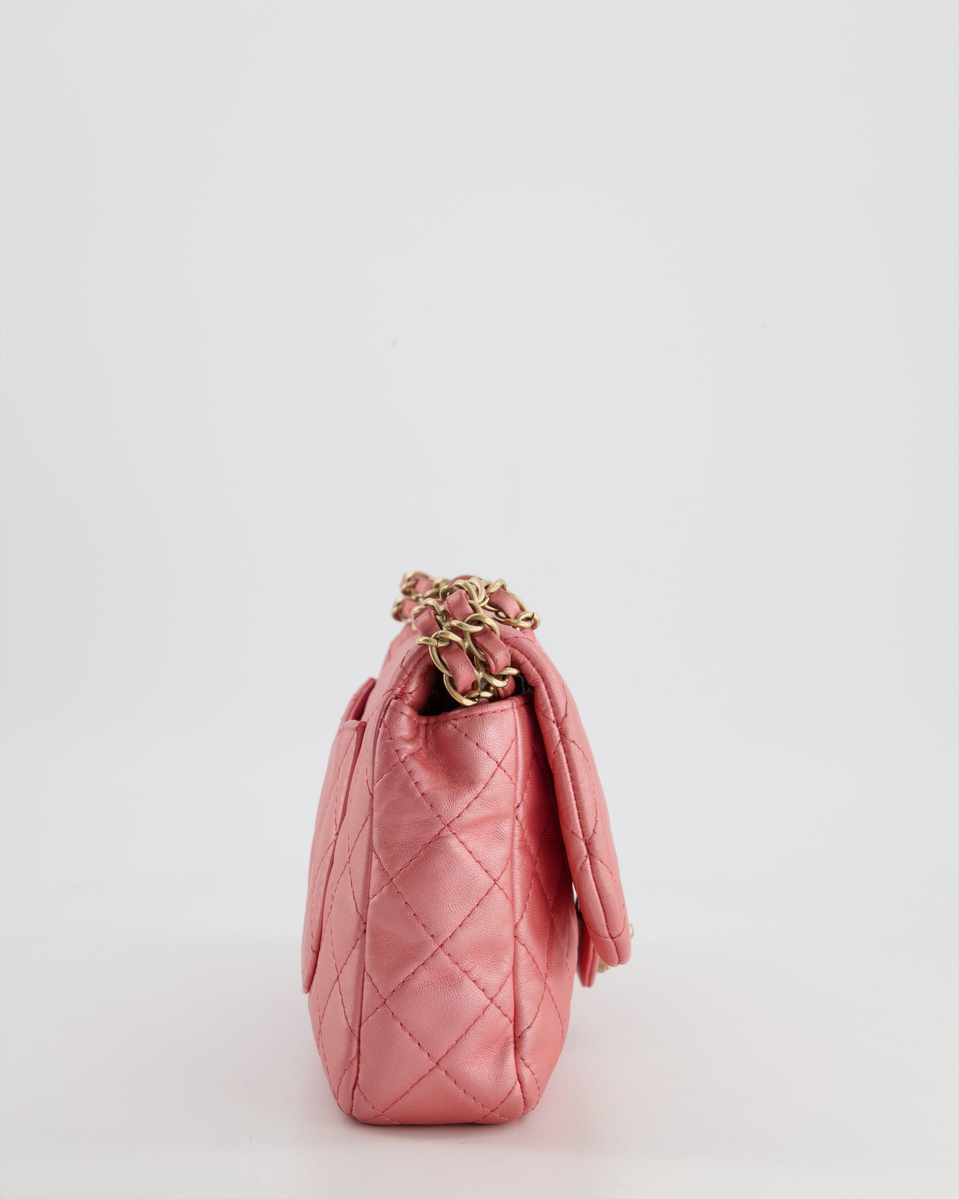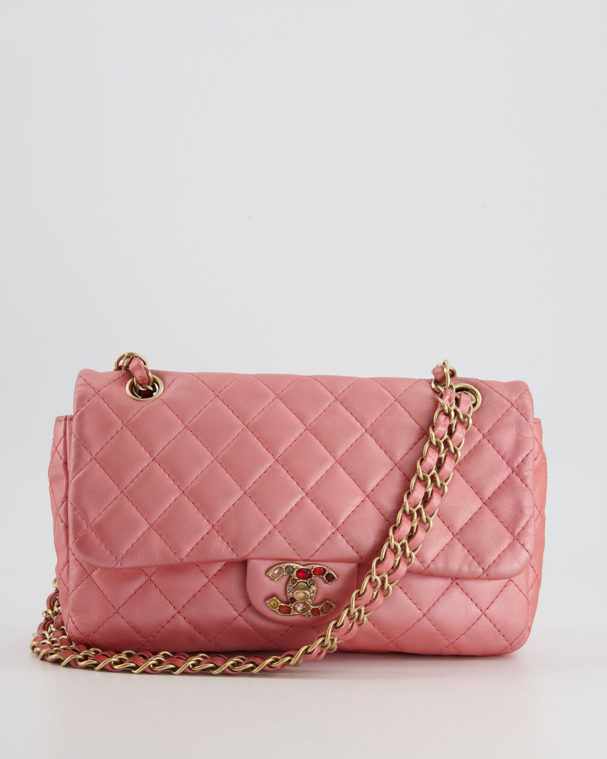 *LIMITED EDITION* Chanel Pink Metallic Single Flap Shoulder Bag in Lambskin Leather with Gold and Precious Stone Hardware