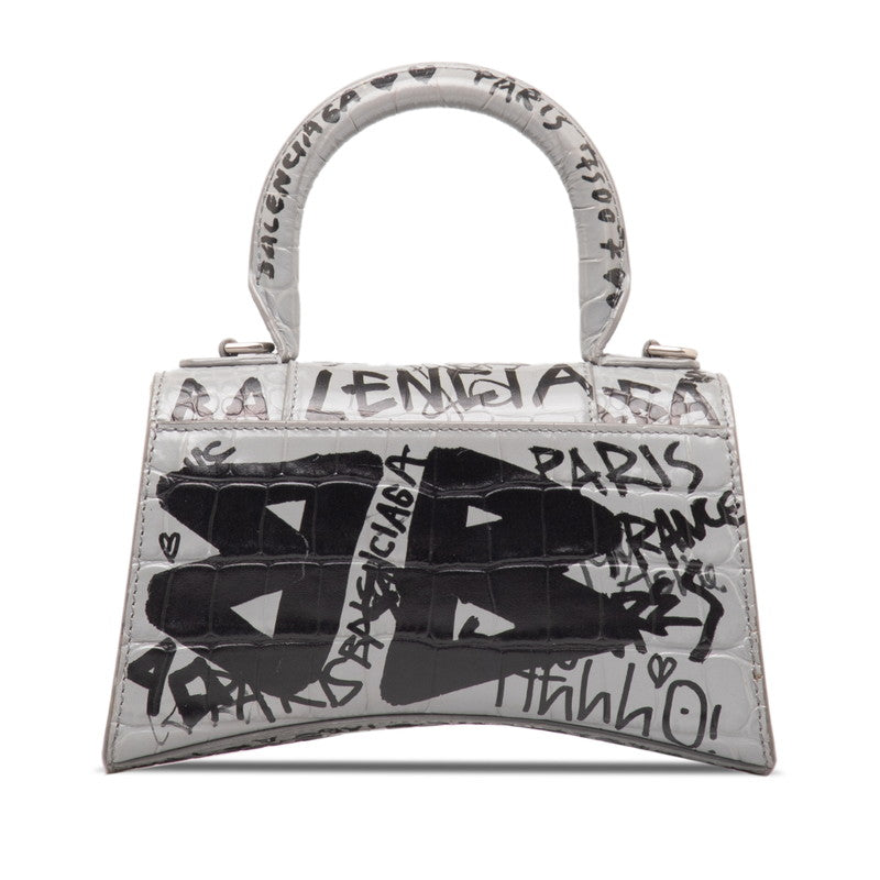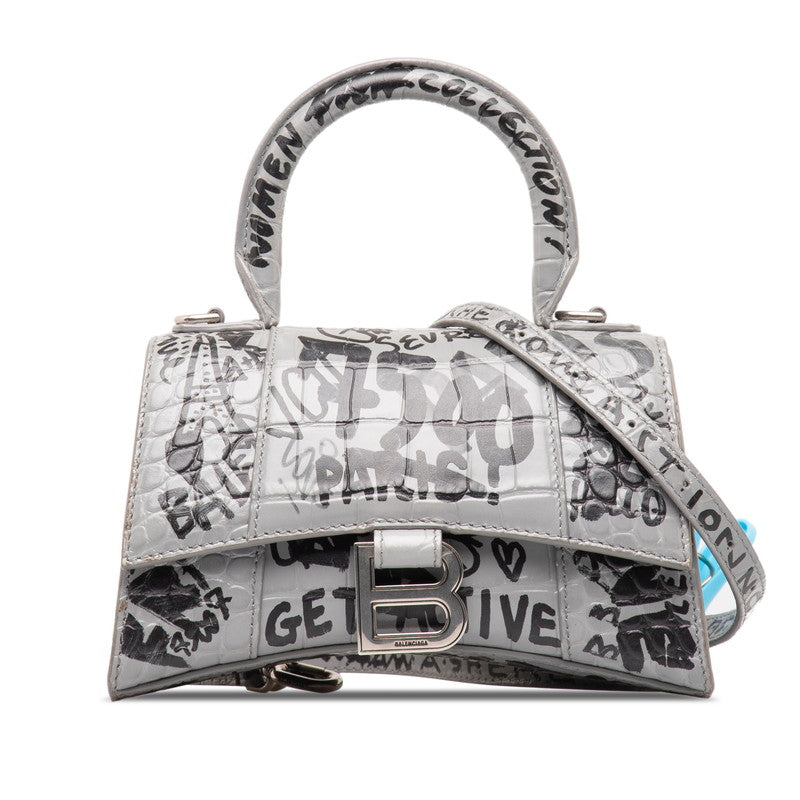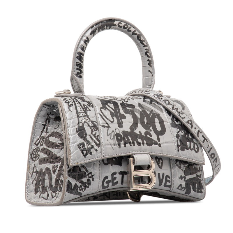 Balenciaga Valentino Glass XS Crocodile Pressed Handbag Shoulder Bag 2WAY 592833 Gr Black Leather